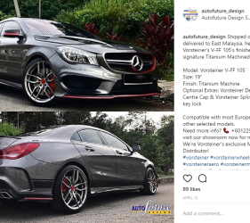 The client came across a previous timeline post of ours on our social media feeds of which we shipped a set of V-FF 105 wheels to East Malaysia for a client which resulted in his CLA 45 looking super stunning.