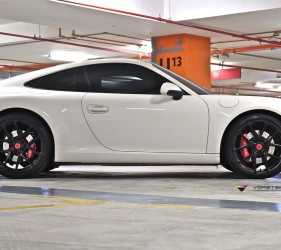 All in all, without these Vorsteiner goodies, this Porsche 911 Carrera S wouldn’t ever be perfect! The marriage of an outstanding supercar and outstandingly outspoken, gorgeous wheels truly takes this Carrera to the next level. With the vehicle’s opulent white paint job gorgeously contrasting with the custom Satin Black finish on the wheels, the stock alloys of the Porsche would be no match in terms of both aesthetics and performance for the Vorsteiner alloys!