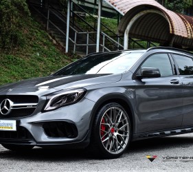 A client of which had paid us a visit was well versed with our social media activities. He spotted a handful of conversions done on Mercedes-Benz GLA vehicles of which featured various Vorsteiner wheel designs and with all that seen, he excitedly took the plunge and paid us a visit to have a look at the wheel designs that would look great on his GLA45!