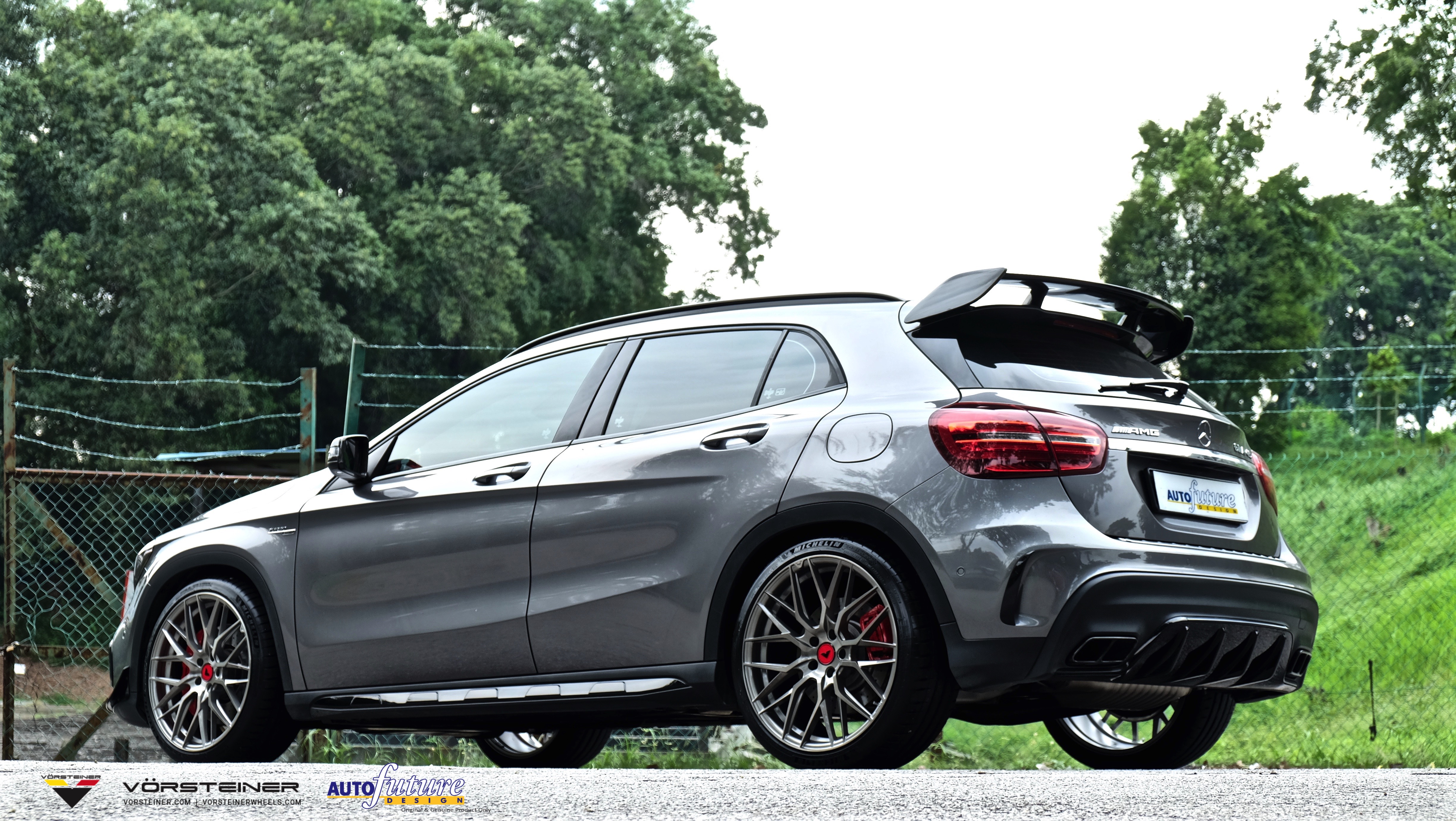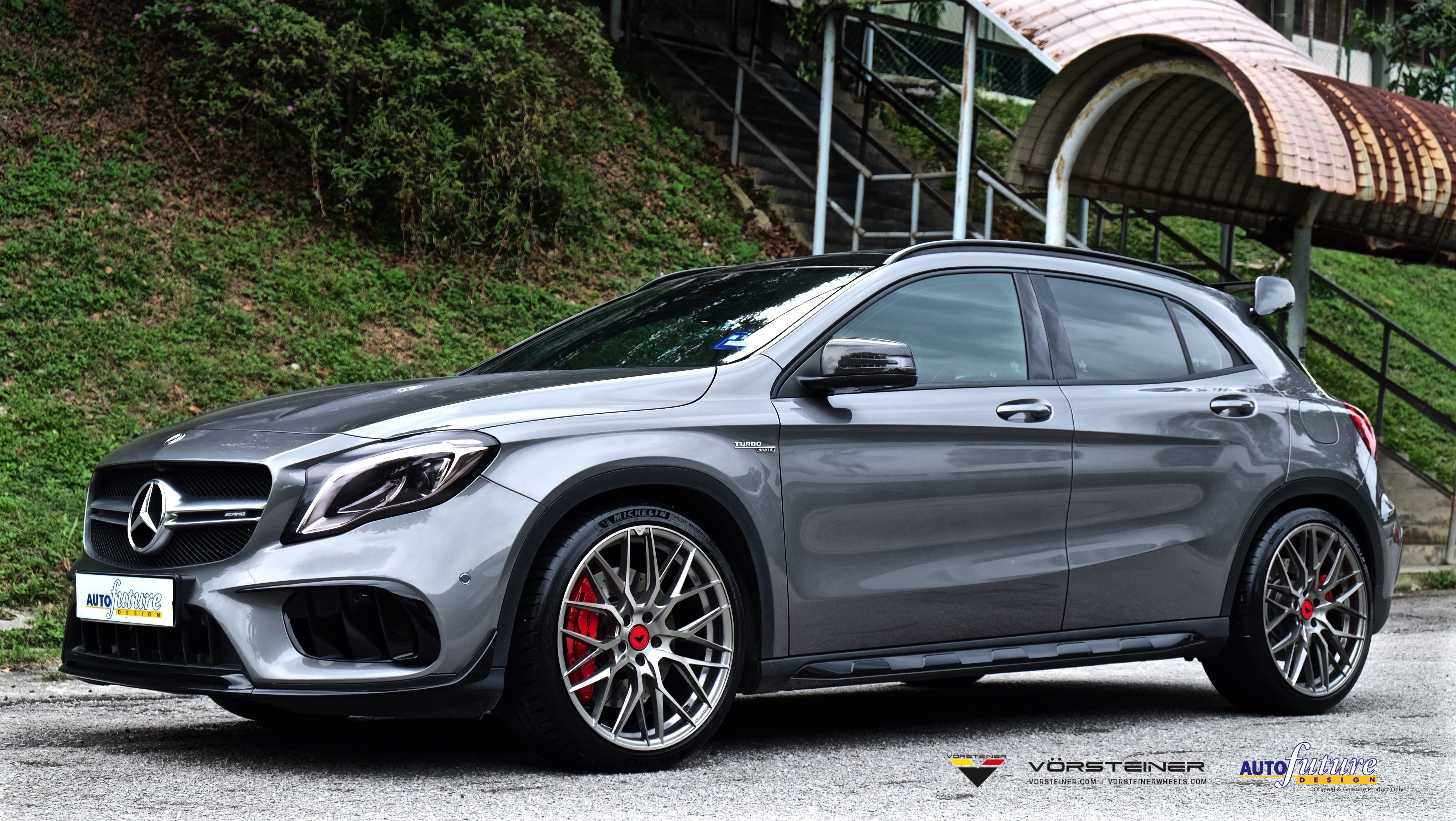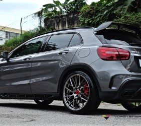 The popular Vorsteiner finish, dubbed Titanium Machine is one of Vorsteiner’s most popular and well loved wheel finishes as they exude a mass of class and elagance of which suits both the V-FF 107 wheel design and the car itself. The wheel finish binds up perfectly with the car’s body colour and gives the GLA45 a sportier look without being too aggressive! We threw in a set of Vorsteiner’s Designer Red center caps of which matches the GLA45’s brake calipers and installed everything via a set of Vorsteiner Spline Lug Bolts for extra sporty charisma!